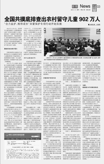 全國共摸底排查出農(nóng)村留守兒童902萬人