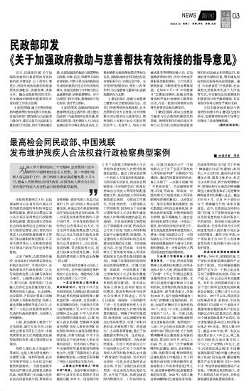 最高檢會同民政部、中國殘聯(lián)發(fā)布維護殘疾人合法權(quán)益行政檢察典型案例