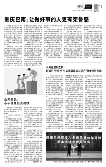 從實(shí)驗(yàn)室到醫(yī)院 阿里巴巴“醫(yī)療AI多癌早篩公益項(xiàng)目”落地浙江麗水