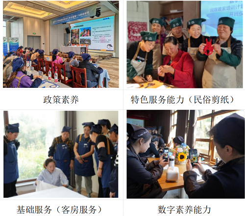 ▲數(shù)字木蘭普惠班:根據(jù)《民宿管家國家職業(yè)標準(2024 年版)》要求,結合消費群體對民宿服務的需求,開展政策素養(yǎng)、基礎服務、特色服務和數(shù)字素養(yǎng)四項能力的實操性培訓。