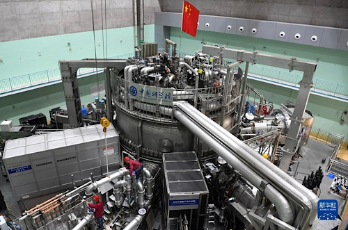 在中科院合肥物質(zhì)科學(xué)研究院,工作人員對(duì)有“人造太陽(yáng)”之稱的全超導(dǎo)托卡馬克核聚變實(shí)驗(yàn)裝置(EAST)進(jìn)行升級(jí)改造(2021年4月13日攝)。新華社記者 劉軍喜 攝