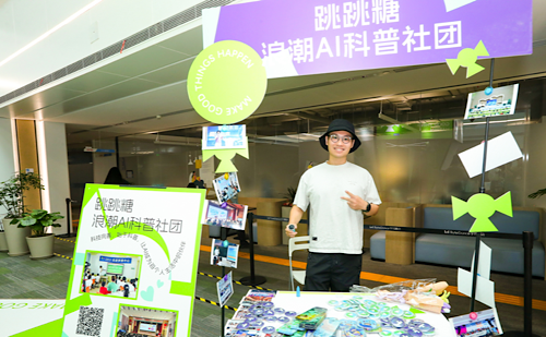 舒楠是一名產(chǎn)品經(jīng)理,出于對(duì)公益的熱忱,在入職字節(jié)跳動(dòng)的五年時(shí)間里,他一直深度參與公益?;谧约旱挠^察和調(diào)研,今年7月,他牽頭發(fā)起了浪潮AI科普社團(tuán),短短兩個(gè)月時(shí)間,已有100多位字節(jié)跳動(dòng)員工志愿者通過(guò)線上線下等形式參與17場(chǎng)科普活動(dòng),覆蓋2900余人次。僅在這次員工公益日活動(dòng)現(xiàn)場(chǎng),就有300多位員工表達(dá)了希望加入該社團(tuán)的意愿,這讓舒楠頗感意外和驚喜。
