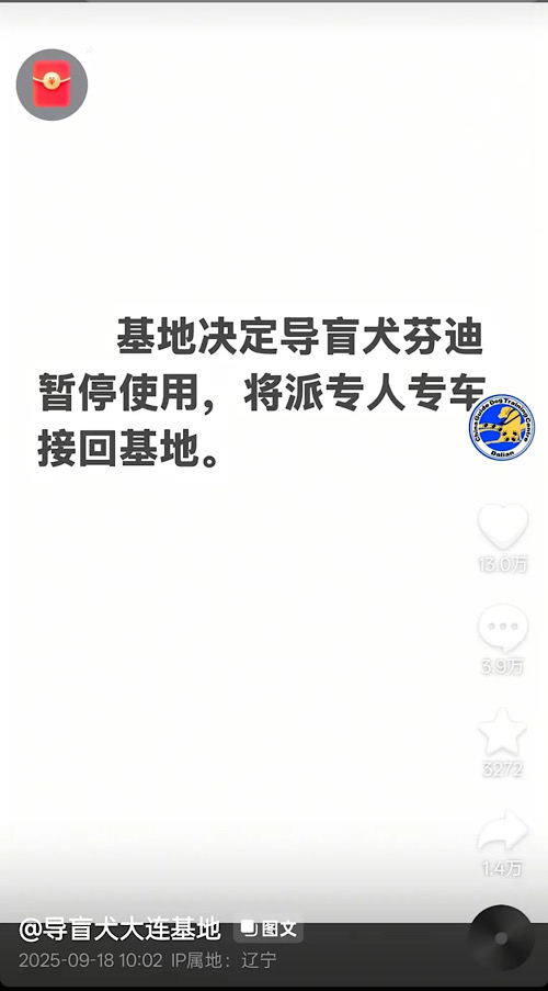 大連導(dǎo)盲犬訓(xùn)練基地抖音官方賬號(hào)發(fā)布