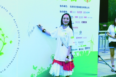 隨著一天騎行活動的成功結(jié)束,6月21日當晚7時,2012亞洲熄燈兩小時環(huán)保晚會正式開始。中央人民廣播電臺副臺長王曉輝、中國節(jié)能協(xié)會副理事長房慶等主辦方代表紛紛表達了對于騎行、熄燈等環(huán)保方式的支持以及對在中國繼續(xù)從事并且發(fā)揚環(huán)保理念的信心。不少熱愛生活、熱愛環(huán)保的明星也加入到此次環(huán)保行動當中,成為綠色節(jié)能的代言人。其中,著名演員焦恩俊、歌手薩頂頂?shù)人嚾藥е约簽榄h(huán)保專門創(chuàng)作的歌曲作品進行了現(xiàn)場演唱,2008年北京奧運會開幕式副總導(dǎo)演陳維亞也來到現(xiàn)場宣揚他早已提出的“文藝演出環(huán)保理念”。