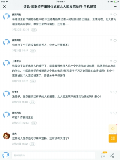 ■ 本報(bào)記者 張龍蛟 3月20日,國(guó)聯(lián)資產(chǎn)捐贈(zèng)儀式在北京大學(xué)國(guó)家發(fā)展研究院舉行。此次捐贈(zèng)儀式的主要內(nèi)容是表彰北大國(guó)發(fā)院金融碩士校友、EMBA2011級(jí)校友、國(guó)聯(lián)資產(chǎn)總裁王巖代表國(guó)聯(lián)資產(chǎn)向北大捐贈(zèng)2000萬(wàn)元人民幣。 綜合教育領(lǐng)域多年的捐贈(zèng)統(tǒng)計(jì)數(shù)據(jù)來(lái)看,2000萬(wàn)元的捐贈(zèng)額并不十分突出,但上述捐贈(zèng)報(bào)道經(jīng)其他媒體發(fā)出后沒多久卻引來(lái)不少網(wǎng)友評(píng)論,且全部是“負(fù)評(píng)”。 此次捐贈(zèng)中網(wǎng)友們控訴的易通貸是什么,易通貸事件的背后反映了什么問題,此類資金為何會(huì)牽涉公益,接受捐贈(zèng)時(shí)應(yīng)如何避免卷入此類事件?這一系列問題的源頭都要從近年來(lái)頻繁“爆雷”的P2P網(wǎng)貸說(shuō)起。 什么是“P2P爆雷”? 所謂“P2P網(wǎng)貸”,指的是個(gè)人對(duì)個(gè)人的網(wǎng)絡(luò)借貸,其典型模式為:網(wǎng)絡(luò)信貸公司提供平臺(tái),由借貸雙方自由競(jìng)價(jià),撮合成交。資金借出人獲取利息收益,并承擔(dān)風(fēng)險(xiǎn);資金借入人到期償還本金,網(wǎng)絡(luò)信貸公司收取中介服務(wù)費(fèi)。 而從2018年以來(lái),P2P平臺(tái)相繼出事,“爆雷”一詞頻繁出現(xiàn)在互聯(lián)網(wǎng)上,意指P2P平臺(tái)因?yàn)橛馄趦陡痘蚪?jīng)營(yíng)不善問題,未能償付投資人本金利息,而出現(xiàn)的平臺(tái)停業(yè)、清盤、法人跑路、平臺(tái)失聯(lián)、倒閉等問題。 據(jù)“新華網(wǎng)思客”2018年7月13日?qǐng)?bào)道,僅半個(gè)月內(nèi),就有超過(guò)40家P2P平臺(tái)相繼“爆雷”,涉及資金超過(guò)1200億元。進(jìn)入2019年,P2P平臺(tái)“爆雷”事件仍時(shí)有發(fā)生。譬如,據(jù)有關(guān)媒體報(bào)道,3月28日就爆出P2P頭部平臺(tái)團(tuán)貸網(wǎng)實(shí)控人唐軍、張林投案自首,警方以涉嫌非法吸收公眾存款立案?jìng)刹椤?/p> P2P作為2006年才傳入國(guó)內(nèi),2011年方迎來(lái)快速發(fā)展期的金融創(chuàng)新模式代表,近年來(lái)為何“爆雷”不止呢?綜合梳理多方分析發(fā)現(xiàn),P2P平臺(tái)“爆雷”的原因有很多,其中就包括純?cè)p騙平臺(tái)跑路、因擠兌或壞賬倒閉、因自身合規(guī)性經(jīng)不住檢查或平臺(tái)方經(jīng)營(yíng)不善而出問題等多方面的原因。 P2P公司熱衷公益慈善 梳理P2P平臺(tái)的業(yè)務(wù),不難發(fā)現(xiàn),不少P2P相關(guān)公司與其責(zé)任人都熱衷于公益慈善事業(yè)。除此次備受質(zhì)疑的P2P易通貸法定代表人、國(guó)聯(lián)資產(chǎn)總裁王巖代表國(guó)聯(lián)資產(chǎn)向北大捐贈(zèng)2000萬(wàn)元一事之外,另?yè)?jù)《中國(guó)基金報(bào)》報(bào)道,2016年2月成立團(tuán)貸網(wǎng)的唐軍,早在2016年10月愛佑慈善基金會(huì)舉辦的年度慈善晚宴上,就捐出5200萬(wàn)元善款支持愛佑慈善基金會(huì)。 此外,擁有P2P業(yè)務(wù)“宜人貸”的宜信在2009年就推出助農(nóng)公益理財(cái)平臺(tái)“宜農(nóng)貸”,通過(guò)宜農(nóng)貸,資金出借人可以將資金出借給貧困地區(qū)的農(nóng)村借款人,支持他們發(fā)展生產(chǎn)、改善生活。 2018年7月因項(xiàng)目逾期、實(shí)際控制人失聯(lián)而“爆雷”的P2P平臺(tái)禮德財(cái)富自2014年開始就攜手揭陽(yáng)市大學(xué)生發(fā)展基金會(huì)發(fā)起公益眾籌助學(xué)項(xiàng)目,助力貧困大學(xué)生。 “爆雷”會(huì)否影響相關(guān)公益項(xiàng)目? P2P平臺(tái)“爆雷”事件的頻發(fā),也在一定程度上也給和P2P平臺(tái)相關(guān)的公益慈善項(xiàng)目或活動(dòng)帶來(lái)了影響。王巖代表國(guó)聯(lián)資產(chǎn)向北大捐贈(zèng)2000萬(wàn)元而遭到P2P平臺(tái)易通貸相關(guān)網(wǎng)友負(fù)評(píng)一事僅是其中一例。 據(jù)了解,易通貸全稱是北京易通貸金融信息服務(wù)有限公司,是一家網(wǎng)絡(luò)借貸信息中介服務(wù)平臺(tái),屬于君石控股集團(tuán)旗下公司,為出借人群和中小企業(yè)提供網(wǎng)絡(luò)借貸信息中介服務(wù)。 據(jù)天眼查顯示,北京易通貸金融信息服務(wù)有限公司和國(guó)聯(lián)資產(chǎn)管理有限公司的法定代表人和大股東都是王巖。 易通貸是目前國(guó)內(nèi)P2P網(wǎng)貸公司大軍中的一個(gè)縮影。據(jù)易通貸官網(wǎng)介紹,2011年成立的易通貸,在2013年正式上線交易,并在之后榮獲了包括“2014年度最佳P2P平臺(tái)“獎(jiǎng)、2015年“互聯(lián)網(wǎng)金融安全領(lǐng)袖”獎(jiǎng)、“2017企業(yè)社會(huì)責(zé)任(CSR)優(yōu)秀企業(yè)獎(jiǎng)”等在內(nèi)的多個(gè)獎(jiǎng)項(xiàng),并于2017年5月舉辦了“愛心無(wú)限 通惠天下”易通貸關(guān)注孤獨(dú)癥兒童大型公益活動(dòng),于2017年10月舉辦關(guān)注流動(dòng)兒童公益活動(dòng)。值得注意的是,易通貸官網(wǎng)自稱接入了中國(guó)電子商務(wù)協(xié)會(huì)反欺詐系統(tǒng)。然而在2018年12月20日,民政部官網(wǎng)發(fā)出公告稱,對(duì)中國(guó)電子商務(wù)協(xié)會(huì)作出撤銷登記處罰,同時(shí)將中國(guó)電子商務(wù)協(xié)會(huì)列入社會(huì)組織嚴(yán)重違法失信名單。 回顧網(wǎng)友“負(fù)評(píng)”王