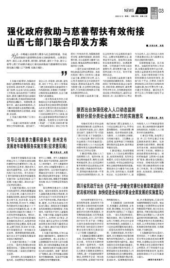 強(qiáng)化政府救助與慈善幫扶有效銜接 山西七部門聯(lián)合印發(fā)方案
