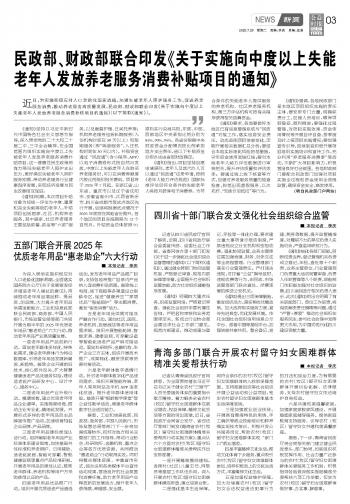 民政部、財政部聯(lián)合印發(fā)《關(guān)于實施向中度以上失能老年人發(fā)放養(yǎng)老服務(wù)消費(fèi)補(bǔ)貼項目的通知》