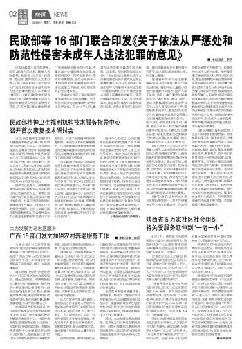 民政部等16部門聯(lián)合印發(fā)《關(guān)于依法從嚴懲處和防范性侵害未成年人違法犯罪的意見》